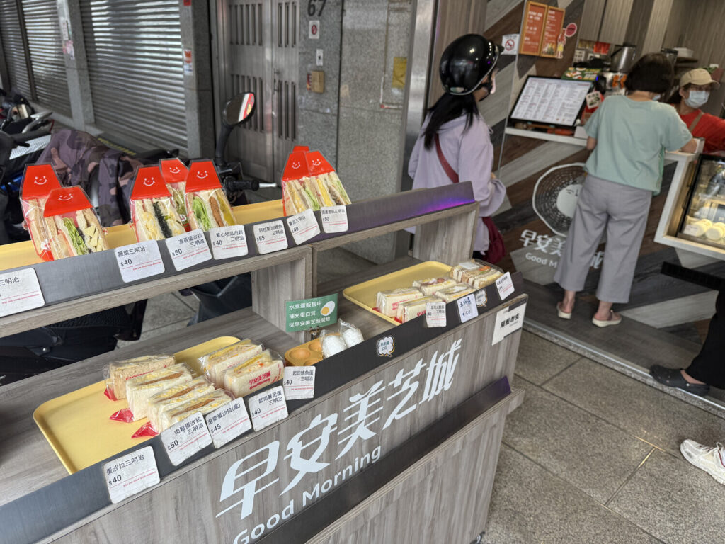 Mi anfitrión y su familia me llevaron a un restorán de desayuno llamado 早安美芝城 (Zǎo’ān Měizhīchéng; Buenos días bella ciudad).