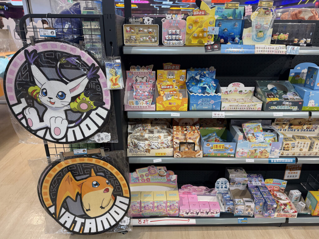 ¿Viste que te conté que Taiwán tiene mucha más variedad de cosas de supermercado que Japón, mismo en productos japoneses (e.g. más gustos de mochi)? Increíblemente, en esta tienda parecía haber más variedad de artículos de animé que en Japón, al menos de los personajes y de las series que tenían. Por ejemplo, había dos góndolas enteras con toda clase de accesorios de Spy × Family.