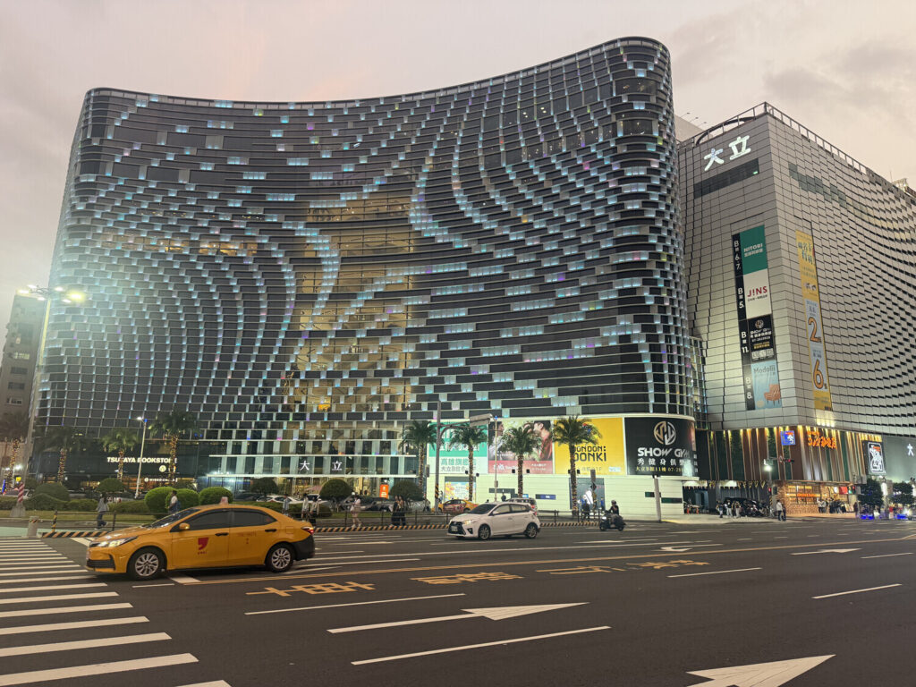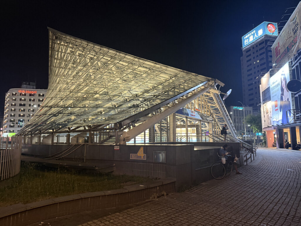 A cien metros de mi hotel está la estación de metro Formosa Boulevard. Así lucía la entrada iluminada de noche: