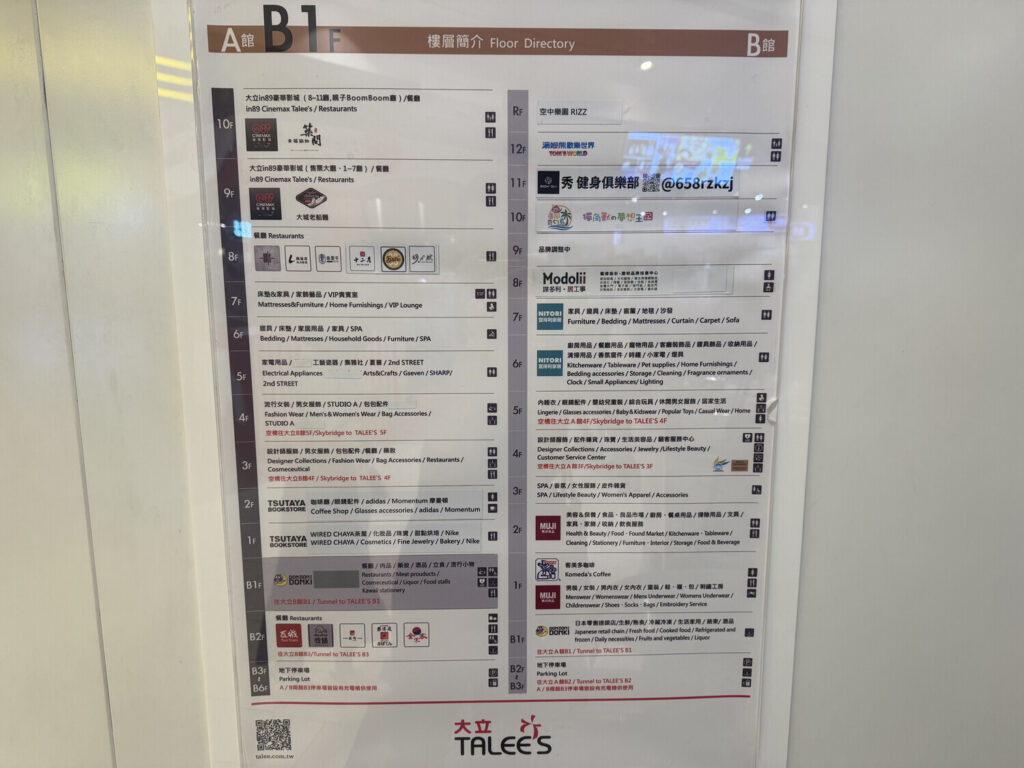 Frente a una de las esquinas del parque había un centro comercial de una decena de plantas y dos edificios interconectados, llamado 大立 (Talee).