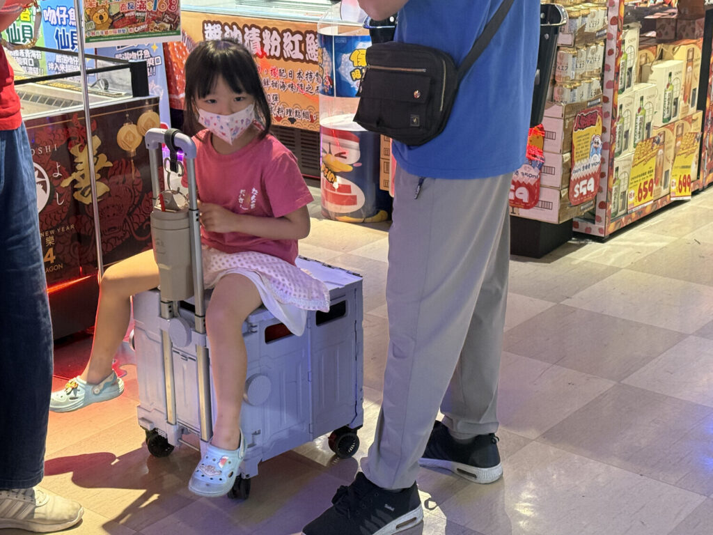 Es curioso lo seguido que veo a gente usando estos carritos en Taiwán. Algunos incluso vienen con un compartimento para colocar una bebida, lo cual les viene genial a los taiwaneses que siempre están tomando té frío. Al parecer en mandarín se llaman 折疊購物車 (zhé dié gòu wù chē; carrito de compras plegable). Este es el desglose: