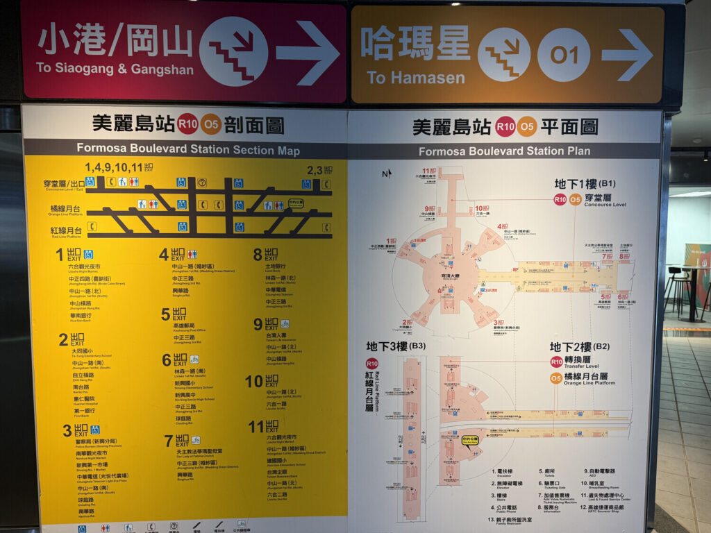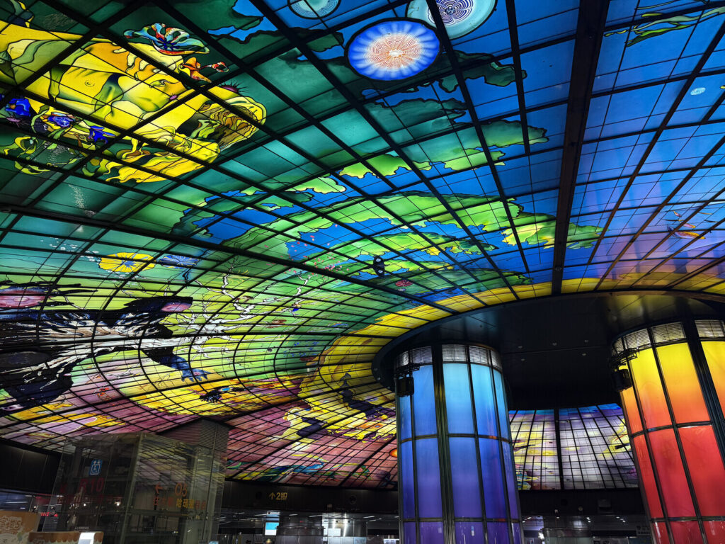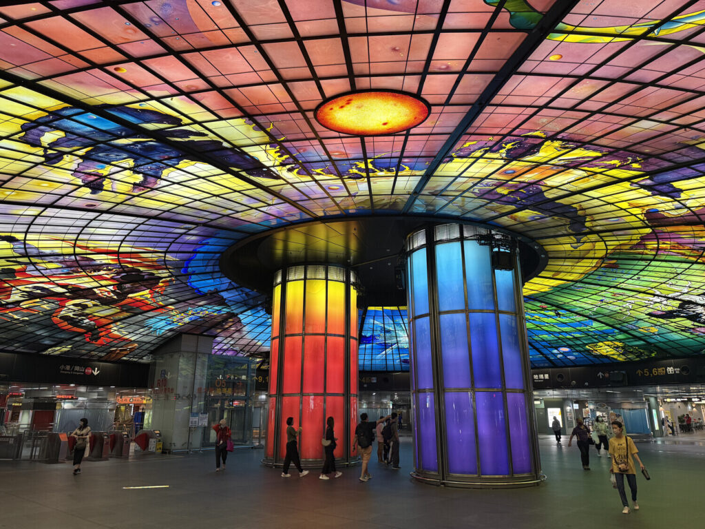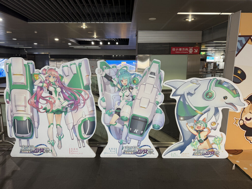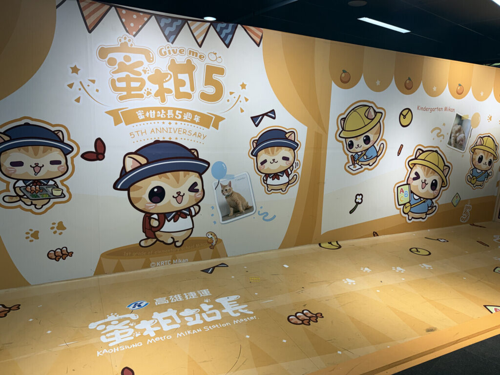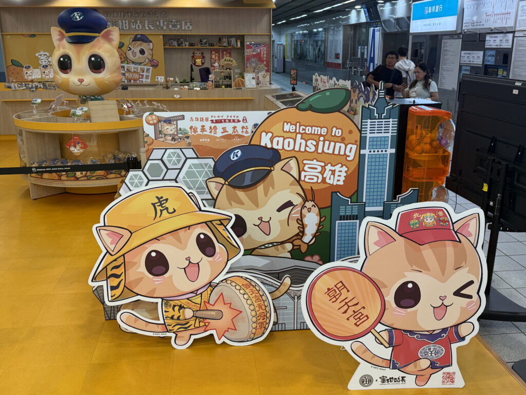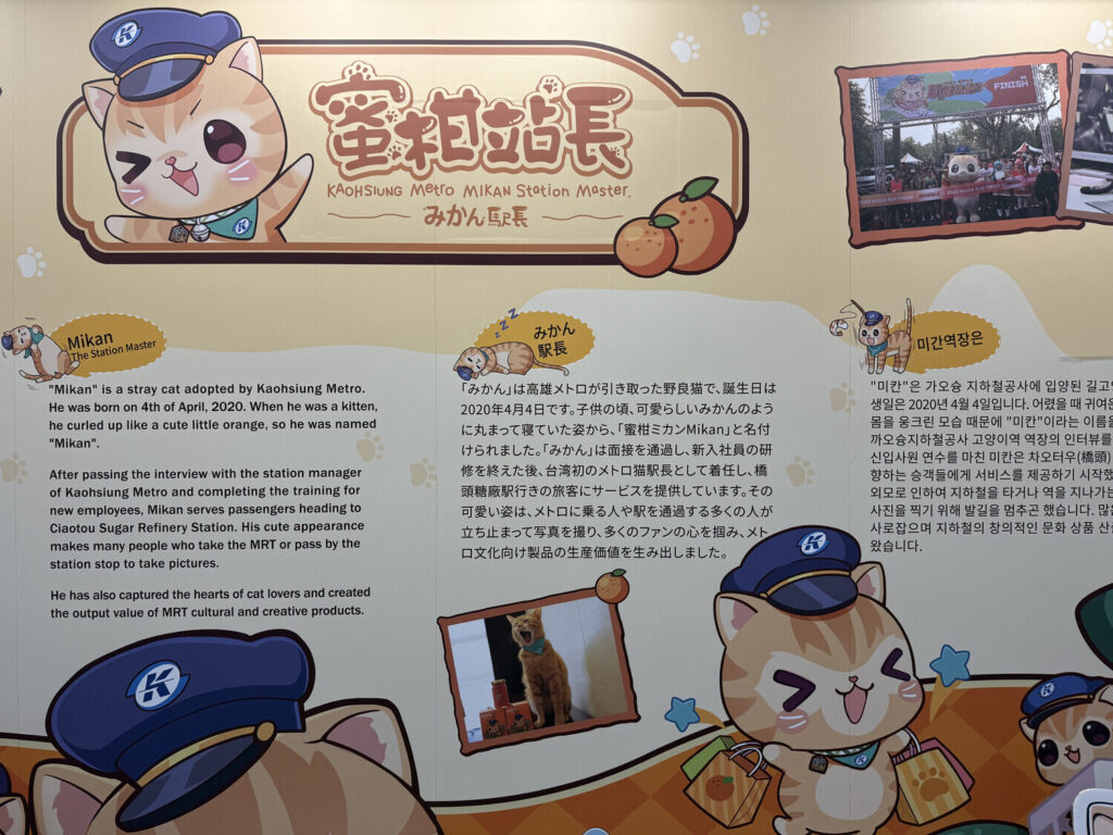 Además de la Cúpula de Luz —que era hermosa de ver en persona—, dentro de la estación también me encontré con las chicas del tren ligero Kaohsiung (高捷少女; Kaohsiung Light Rail Girls) y con el gato jefe de estación Mikan (蜜柑).
