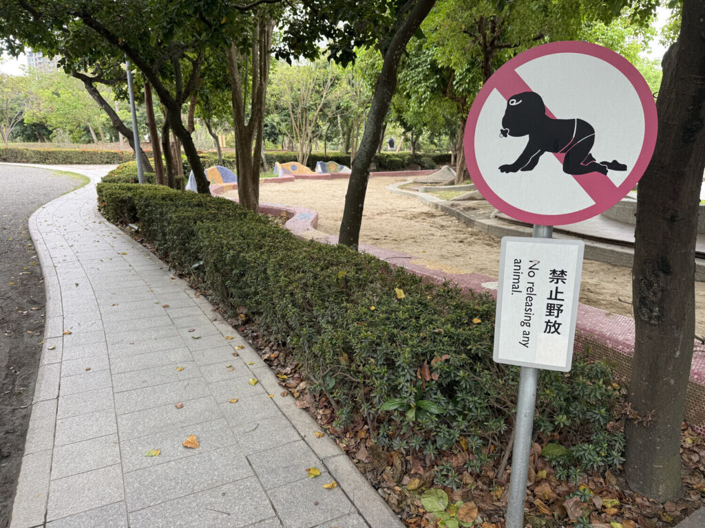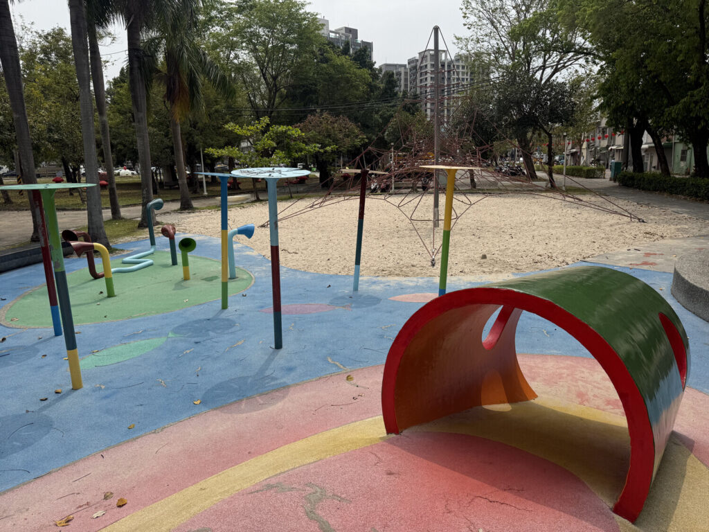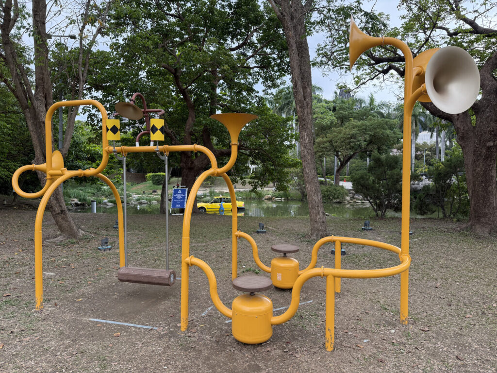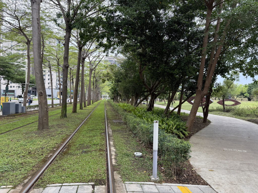Esta última foto es de las vías del LRT (tren ligero / tranvía) de Kaohsiung—un pequeño tramo pasa por el parque, lo cual me resultó simpático.