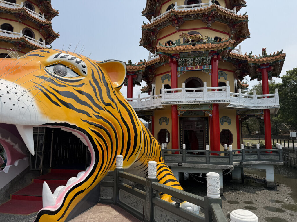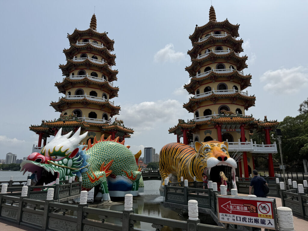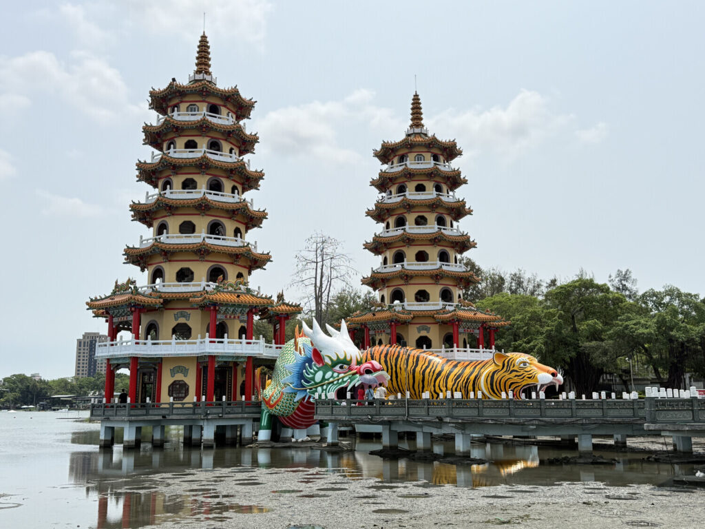Las pagodas del Dragón y el Tigre (en caracteres chinos tradicionales: 龍虎塔) conforman un santuario situado en el Lotus, un lago artificial de la isla de Taiwán […]. El lago fue terminado en el año 1951 y contiene una serie de templos y pabellones entre los que se encuentran estas pagodas, que fueron construidas entre 1976 y 1978.