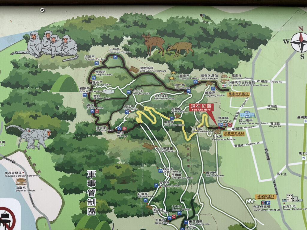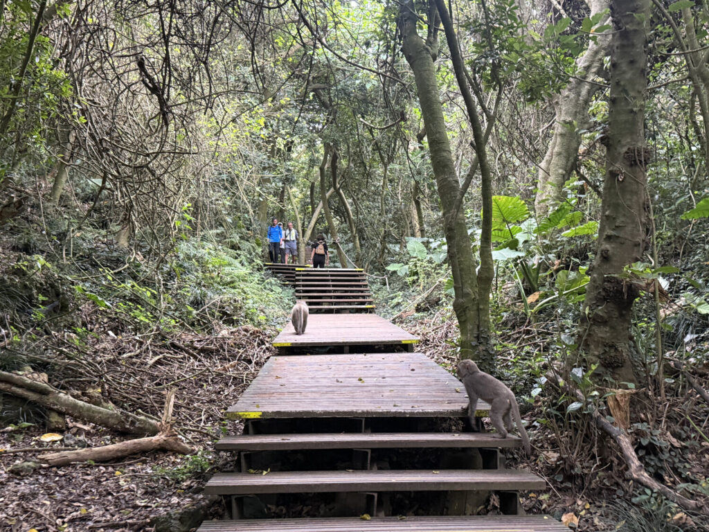 A las 15:00 arranqué el senderismo por la ruta 壽山步道 (Sendero de Shoushan). La montaña también se llamaba 壽山 (Shoushan), aunque también es apodada Monkey Mountain debido a la población de macacos de Formosa que deambulan libremente por los senderos.