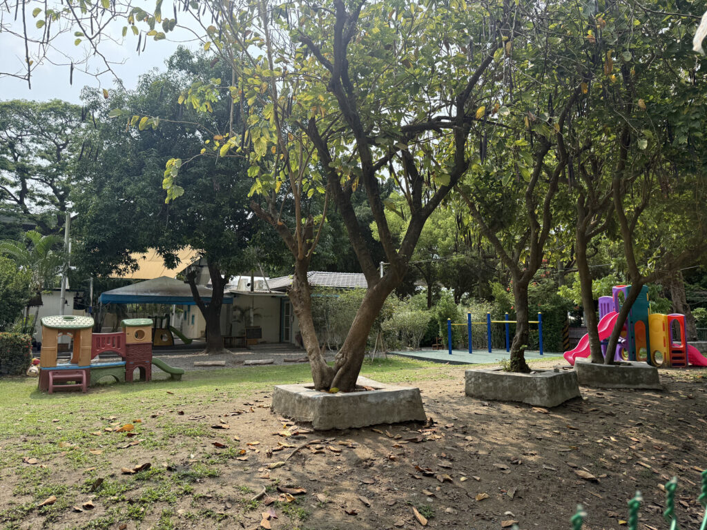Ese muro de cemento que se ve a la izquierda separaba esta zona pública boscosa de una escuela primaria (興糖國民小學; Escuela Primaria Xingtang).