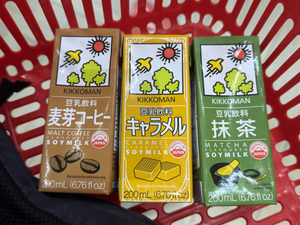 Leche de soja saborizada: café de malta, caramelo y matcha.