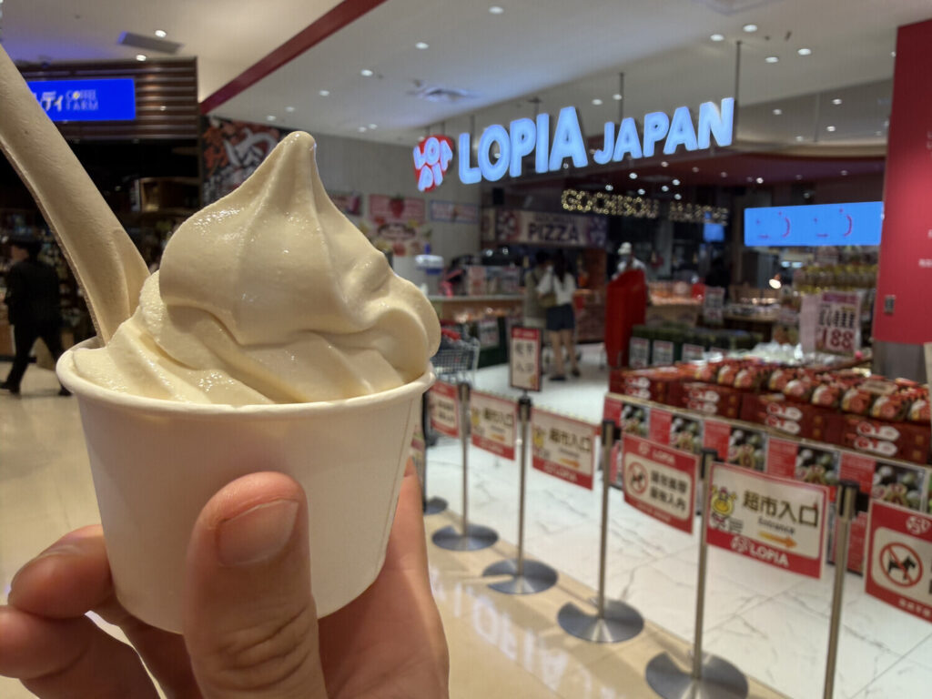 La planta más interesante era la B1F, que tenía varias tiendas de comida y un supermercado Lopia. En Lopia me compré tres cartones de leche de soja de distintos sabores, y un helado de leche de Hokkaido (NT$122; ~3,3€).