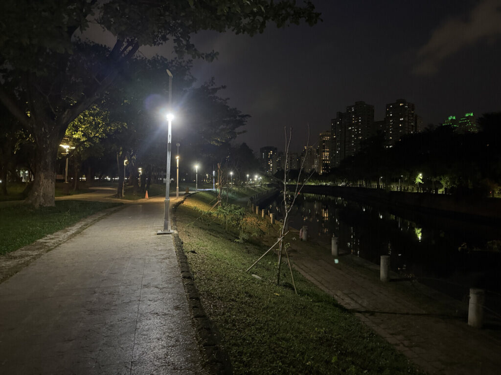 A eso de las 18:30 llegué al 愛河之心 (El corazón del río del Amor), y empecé a caminar por el paseo ribereño de este río, ya por el distrito de Sanmin.