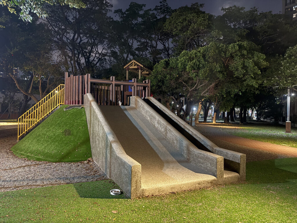 A las 16:00 pasé por otro parque, llamado 後勁公園 (Parque Houjing), en el distrito de Nanzih.