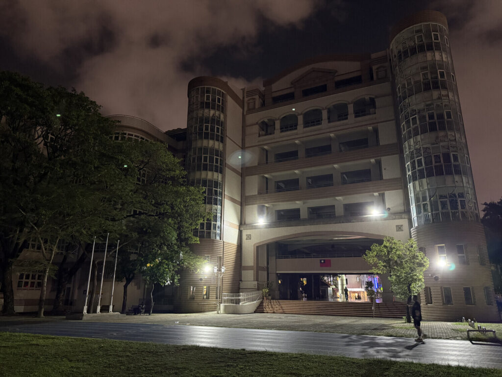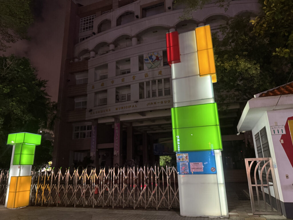 A las 20:00 en punto —ya en mi trayecto de regreso al hotel— pasé frente a la 建國國民小學 (Escuela Primaria Jian-Guo). Me llamó la atención verla todavía abierta.