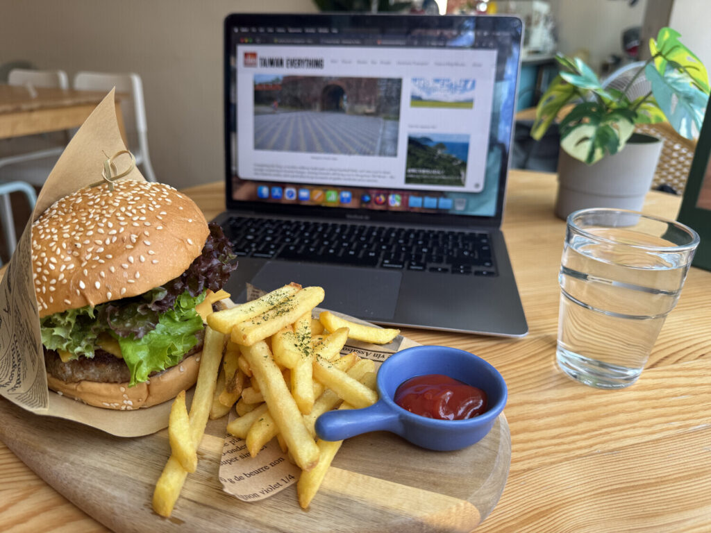 Me pedí la 美式鄉村五盎司煙燻牛肉堡 (hamburguesa de ternera ahumada al estilo americano de 140 g) que según el menú costaba NT$255, pero como pagué en efectivo me cobraron NT$250 (~6,7€).