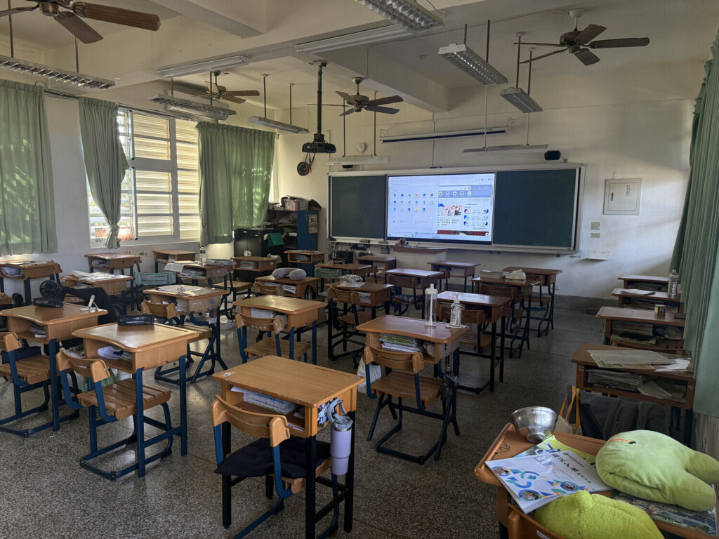 Una cosa que he notado de los estudiantes taiwaneses es que suelen dejar pertenencias en su propio banco, cosa de no tener que estar llevándolas a la casa solo para tener que traerlas de vuelta al día siguiente. Supongo que todo lo que saben que no van a necesitar en la casa simplemente lo dejan en la escuela.