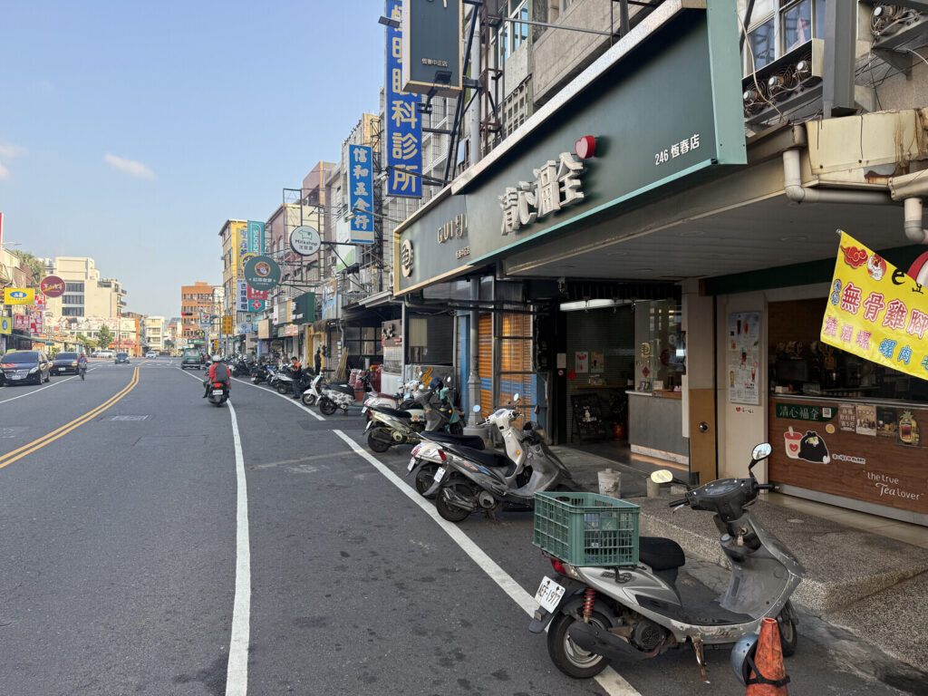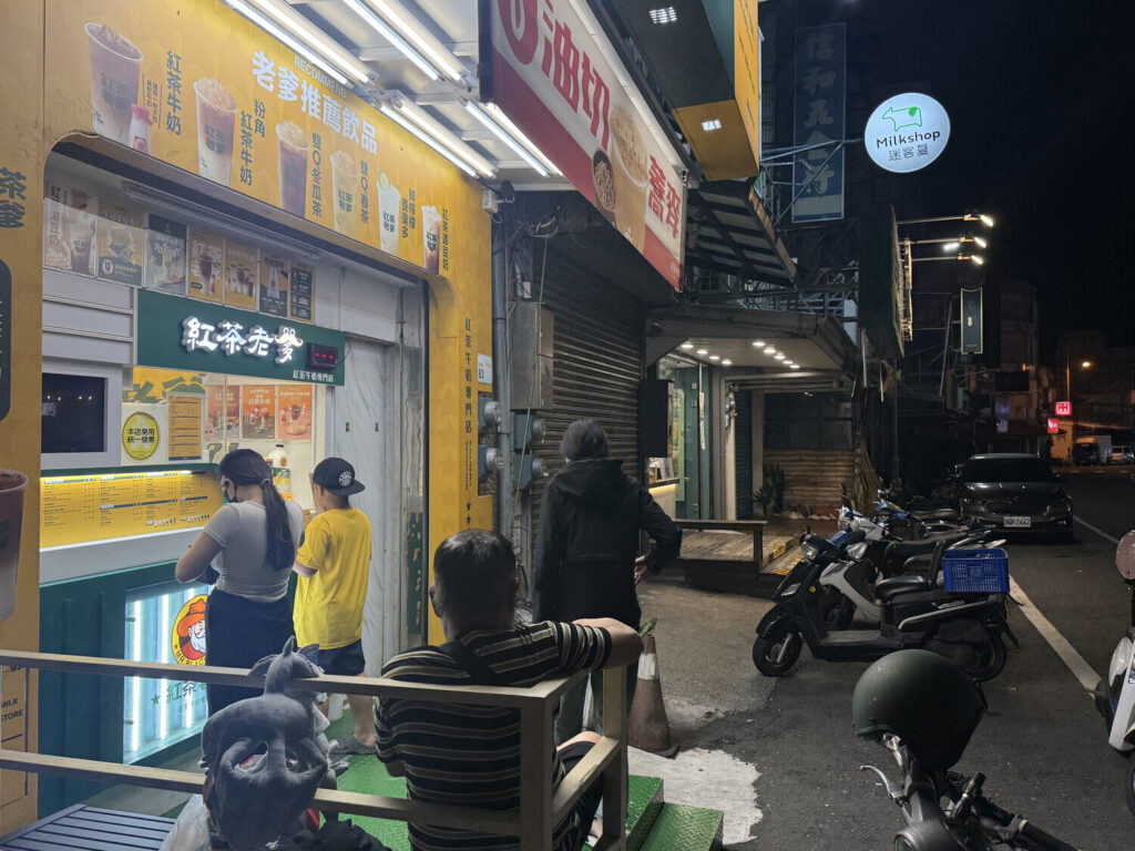 En esta calle —que era una de las principales del pueblo— había cualquier cantidad de tiendas de té helado (o té de burbujas), algunas de las cuales incluso estaban una al lado de la otra. En la imagen de arriba se llegan a ver al menos cinco. A continuación te enumero las que veo que aparecen en Google Maps (todas en la misma cuadra, dentro de un radio de 100 metros):