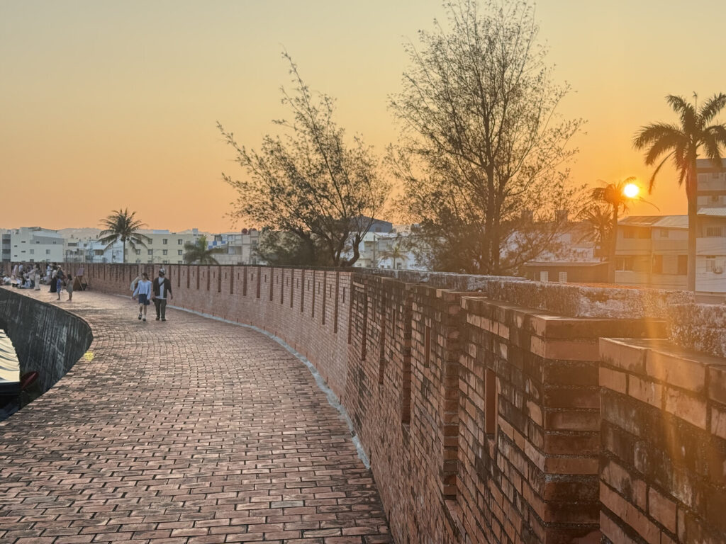 El tramo entre la Puerta Norte y la Puerta Este era de alrededor de 500 metros. Primero hice todo ese tramo por arriba de la muralla, es decir por aquí: