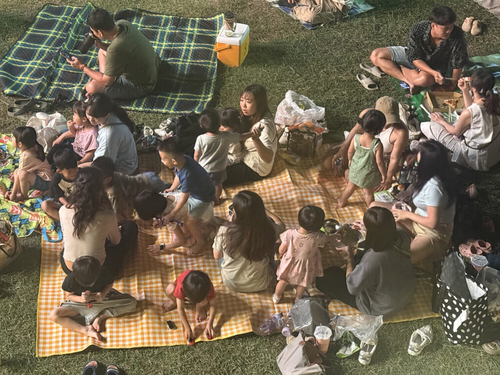 Como estaba solo viendo el festival, a veces me aburría un poco, así que para entretenerme —aprovechando que estaba en ese lugar elevado con buenas vistas a la audiencia— me puse a hacer people-watching (observación de personas).